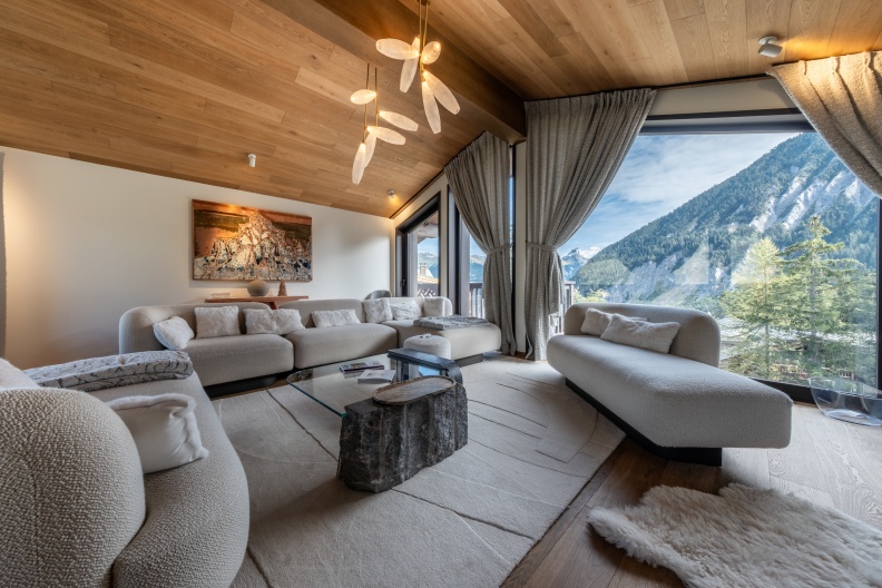 Les pièces de vie sont particulièrement lumineuses grâce à leurs larges baies vitrées, et vous offrent des vues panoramiques à couper le souffle sur les sommets bordant la vallée de Courchevel.