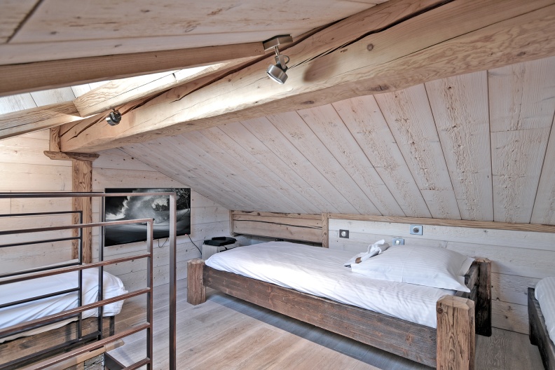 - Pièce en sous-pente pouvant servir de chambre pour enfants avec trois lits simples (90X200) et TV