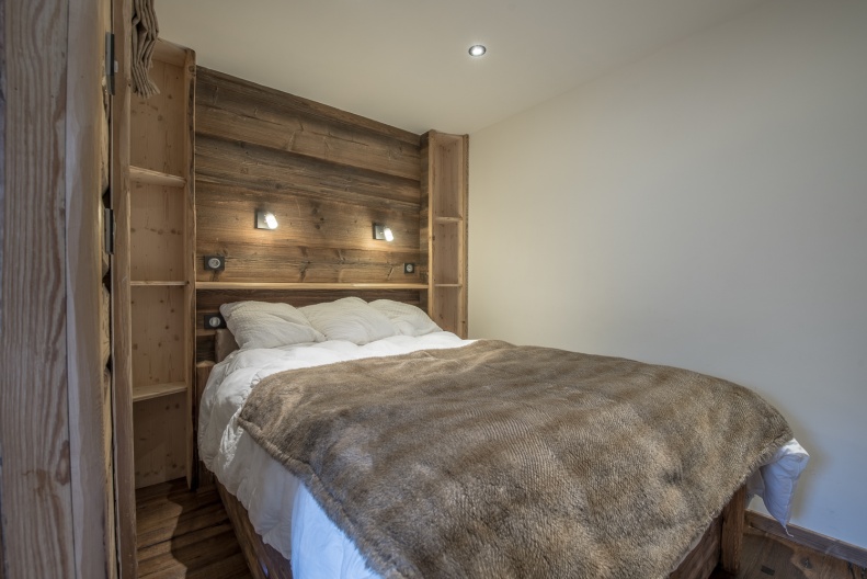 - Chambre 1 : lit double (140 cm) avec rangements et télévison (pas de fenêtre donnant sur l'extérieur)