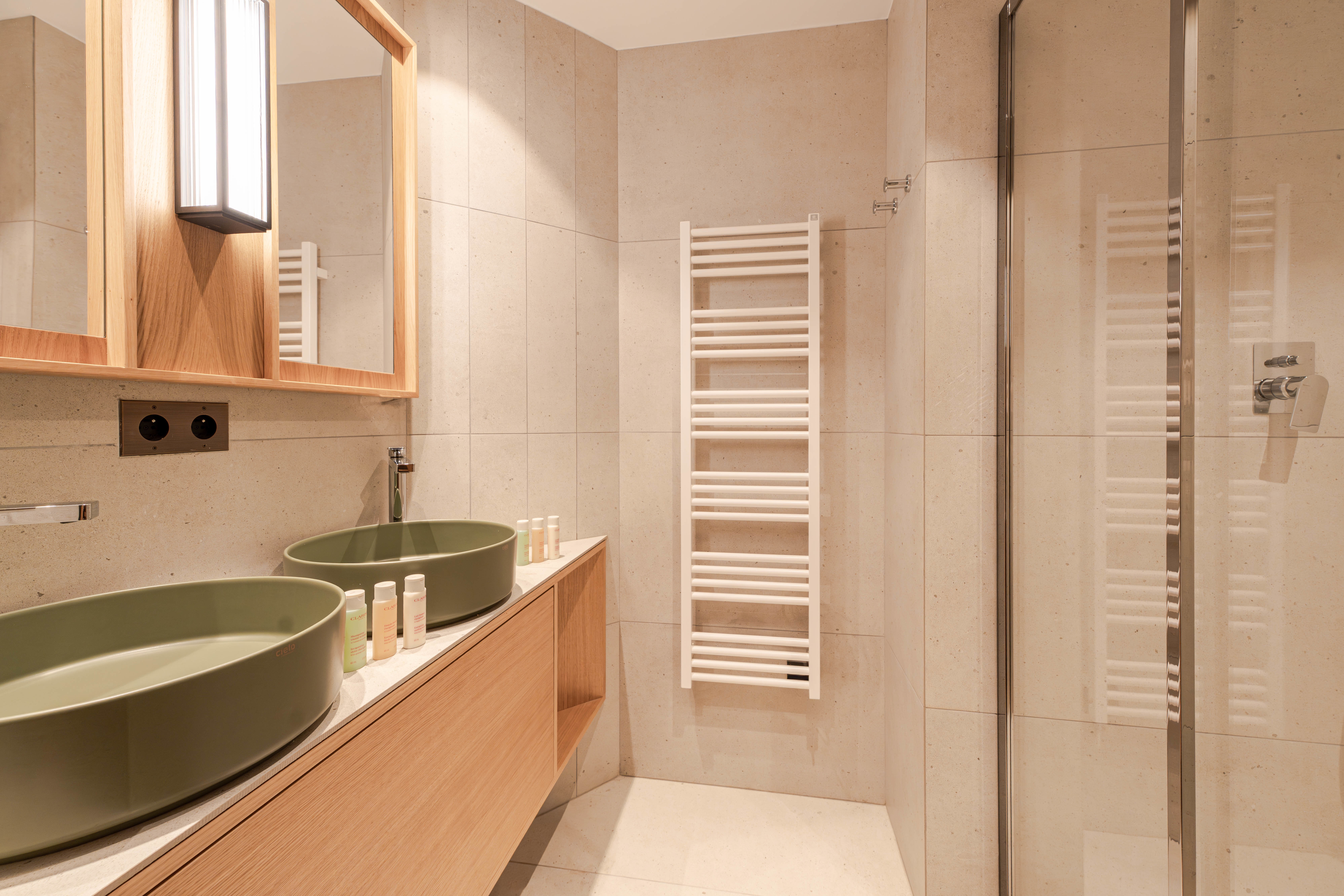 - Chambre 2 : Lit twin ou double (180x200) & 2 lits en hauteur (90x200) - Une salle de douche, double vasques