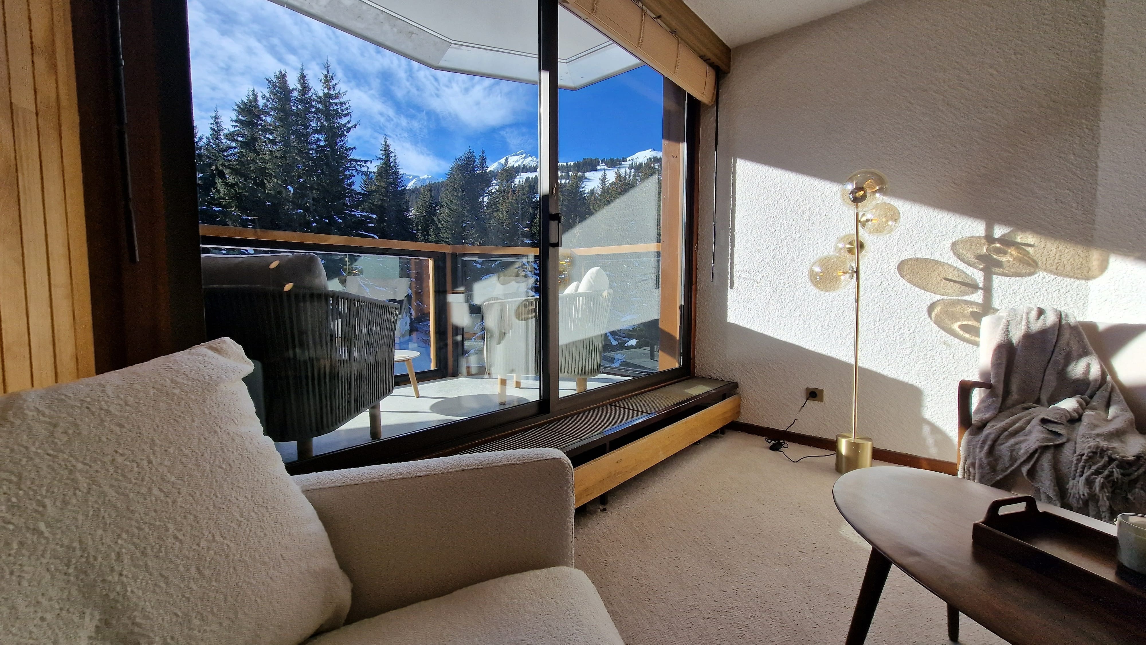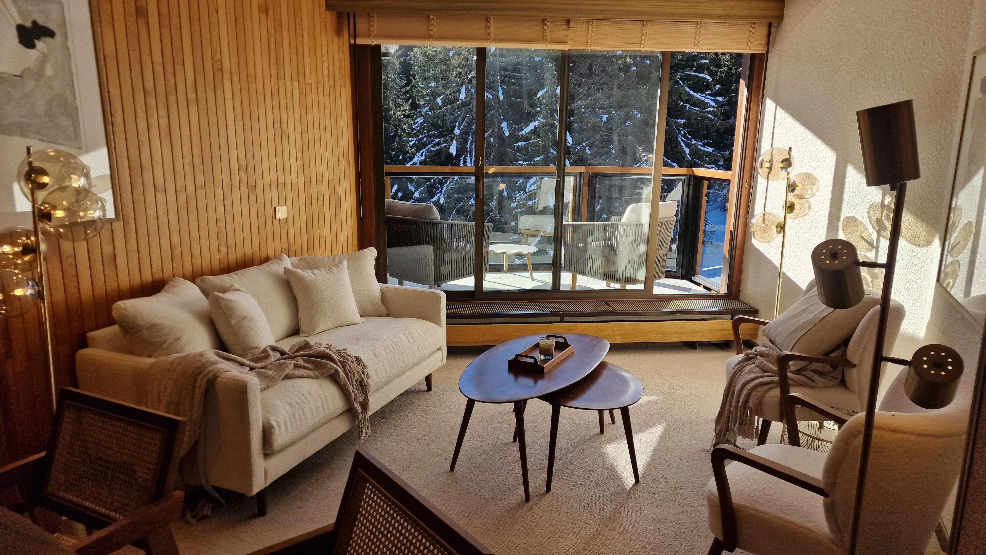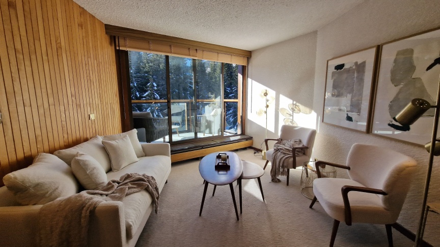 Idéalement situé dans l'emblématique résidence du Domaine du Jardin Alpin, c'est un bel appartement de 2 chambres + 1 studio accolé.