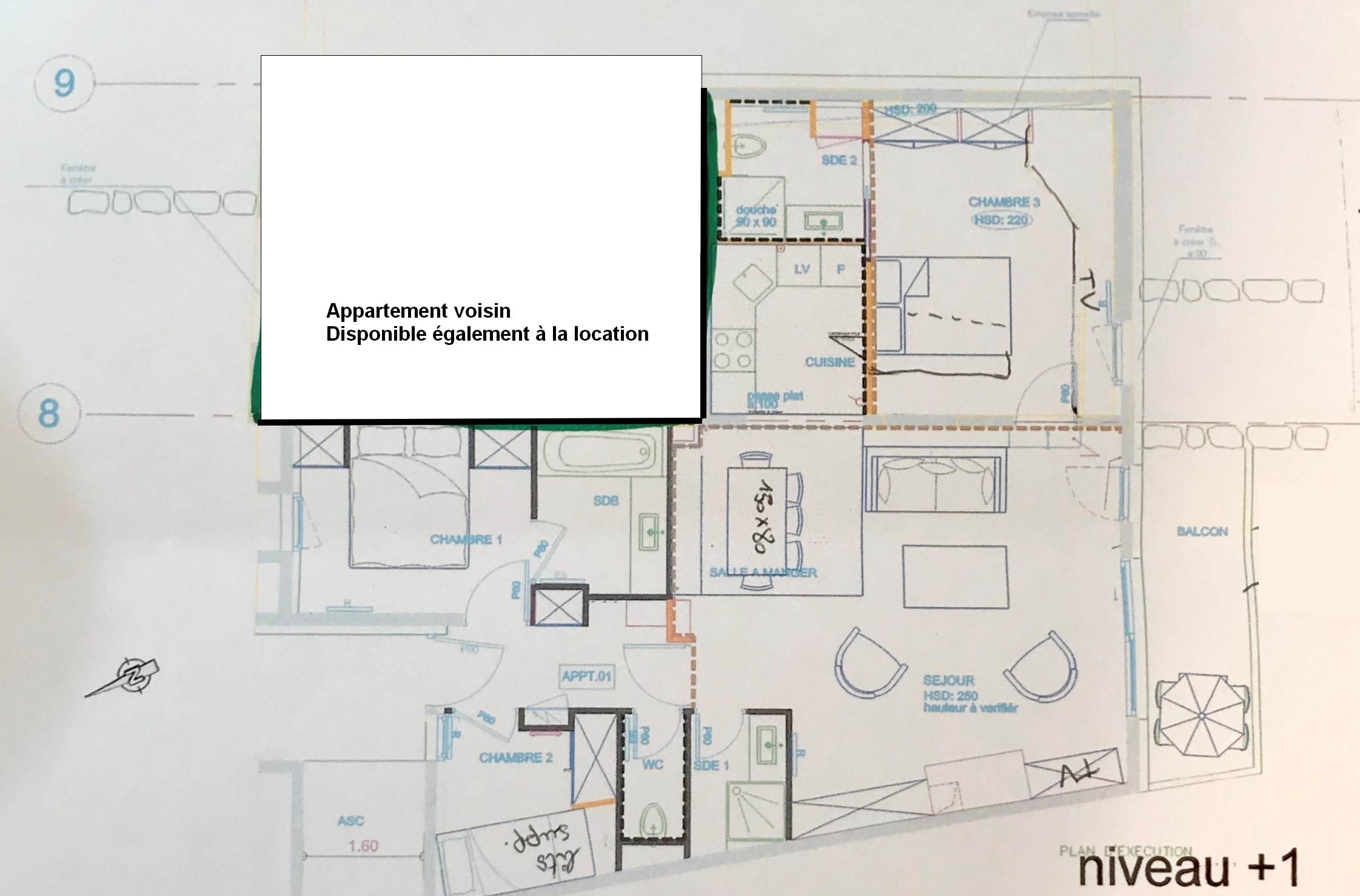 - Balcon avec vue pistes de ski, orienté Sud