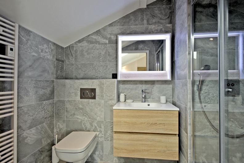 - Chambre 1 : 1 lit double, 1 dressing & une salle de douche avec 1 vasque et 1 WC