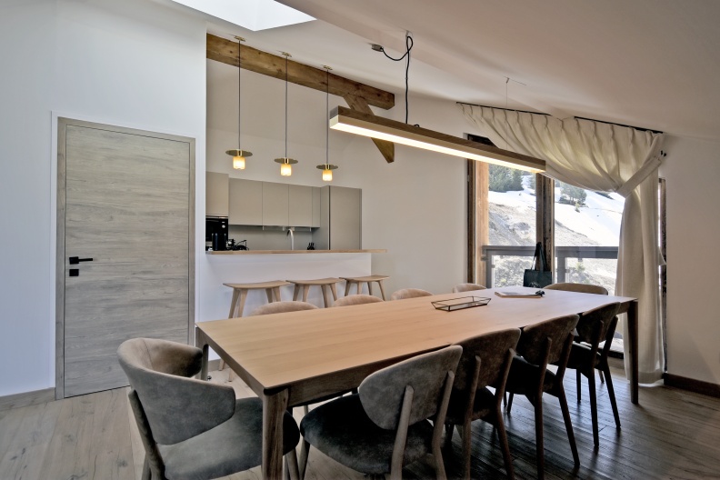 Découvrez l'appartement Ariondaz 501 situé au dernier étage de la copropriété avec une vue à couper le souffle et une luminosité exceptionnelle. L'appartement 501 du domaine de l'Ariondaz a été construit en 2021, il dispose de 4 chambres et est idéalement situé ski aux au pieds et à proximité des commodités. Vous apprécierez ses vues panoramiques, sa grande pièce de vie avec cheminée et l'espace dans les chambres. Cet appartement entièrement neuf de 147m² est idéalement situé et possède tous les équipements indispensables à un séjour inoubliable au cœur du plus grand domaine skiable du monde.