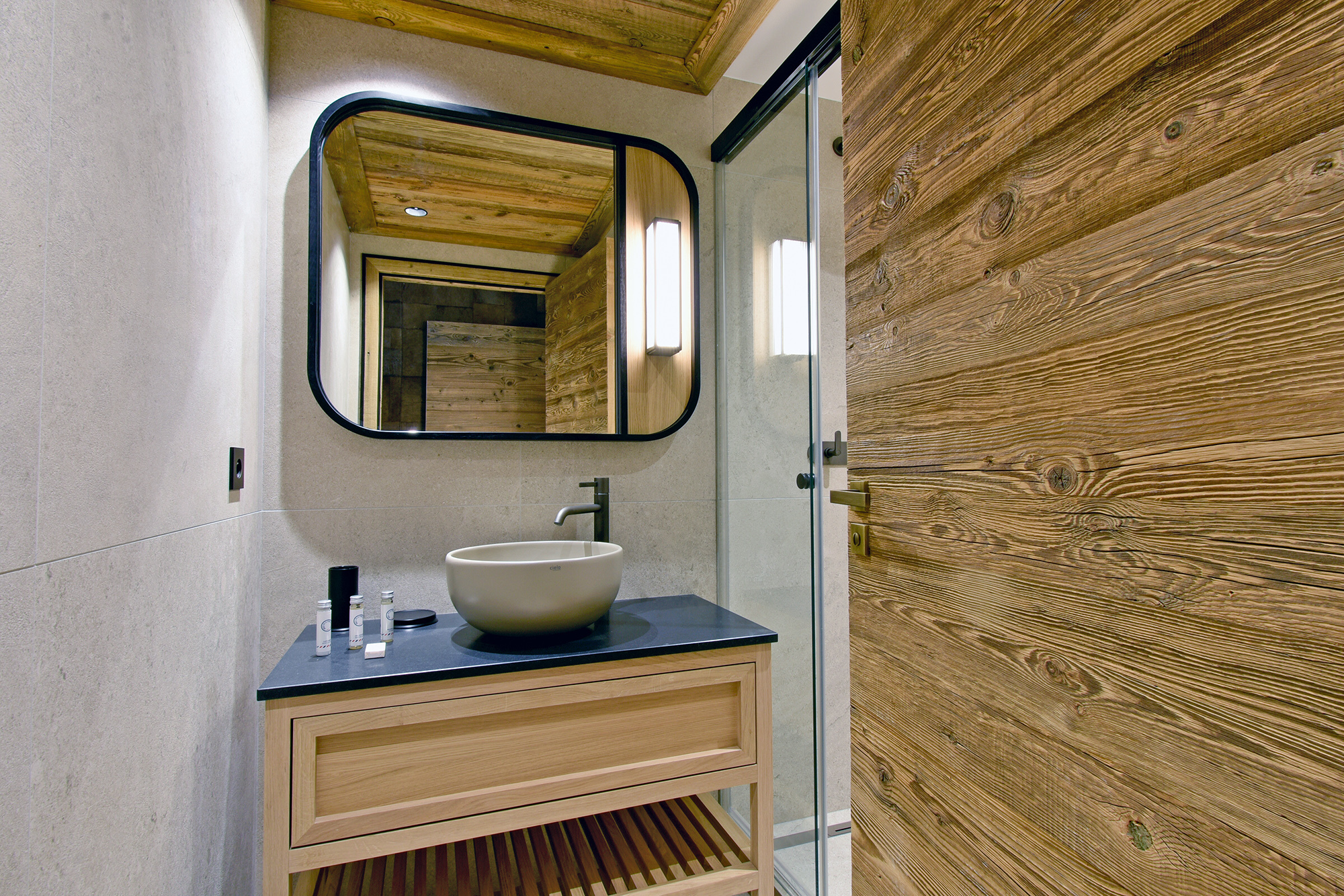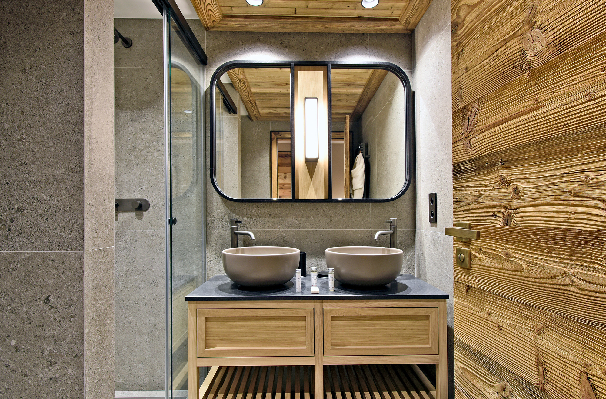 - Salle de douche, double vasques et toilettes