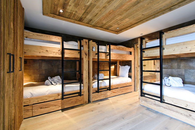 - Chambre 4 : dortoir avec 3 ensembles de lits superposés (90x200), salle de bain avec douche, 2 vasques & WC indépendant