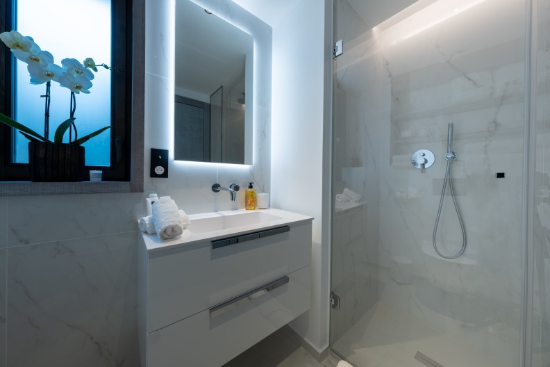 - Chambre 3 : Master avec lit double King Size avec salle de douche, 2 vasques & WC indépendant - Dressing - TV