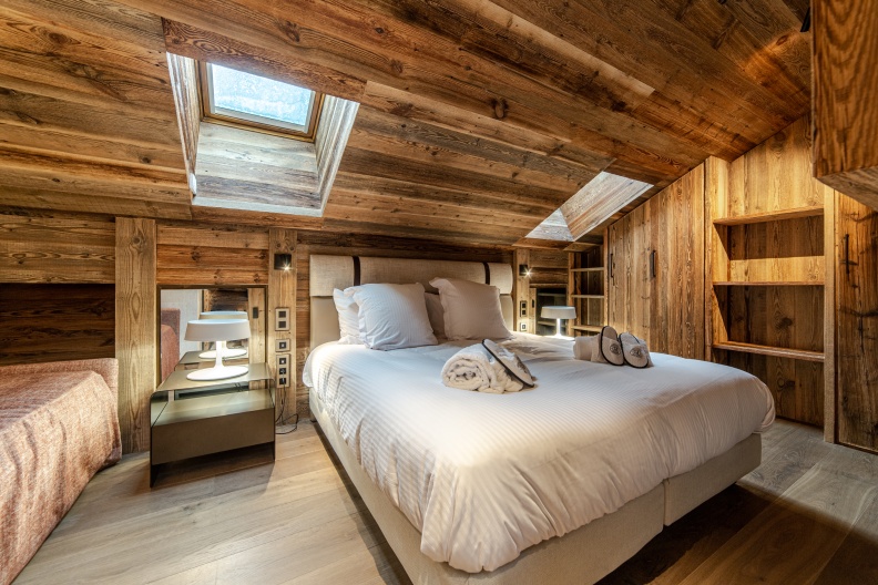 Il est composé de 5 chambres et de 5 salles de bains, luxueusement décorées de vieux bois et cuirs . Il peut accueillir jusqu’à 13 personnes