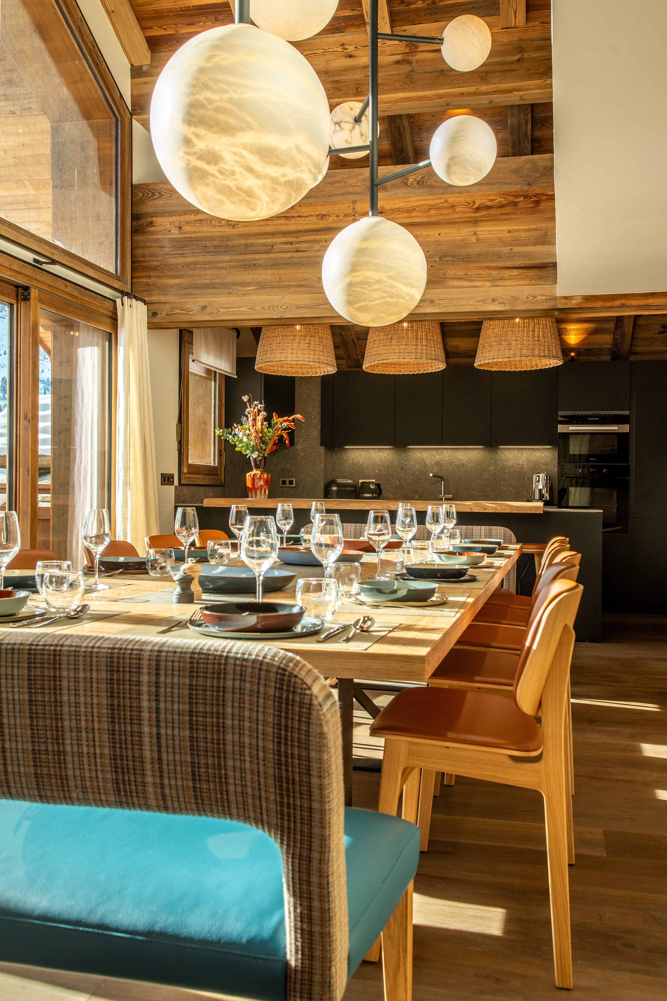 L'aménagement et la décoration intérieure ont été confiés au décorateur Jean-Marc Mouchet. Les matériaux, le mobilier ont été choisis avec goût et répondent aux vœux des propriétaires de faire de ce Rooftop Chalet un havre familial moderne et chic, propice aux dîners et jeux en famille dans la grande pièce à vivre de plus de 100 m².