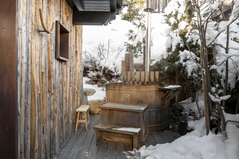 - Bain nordique extérieur chauffé à 40° sur une terrasse paysagée