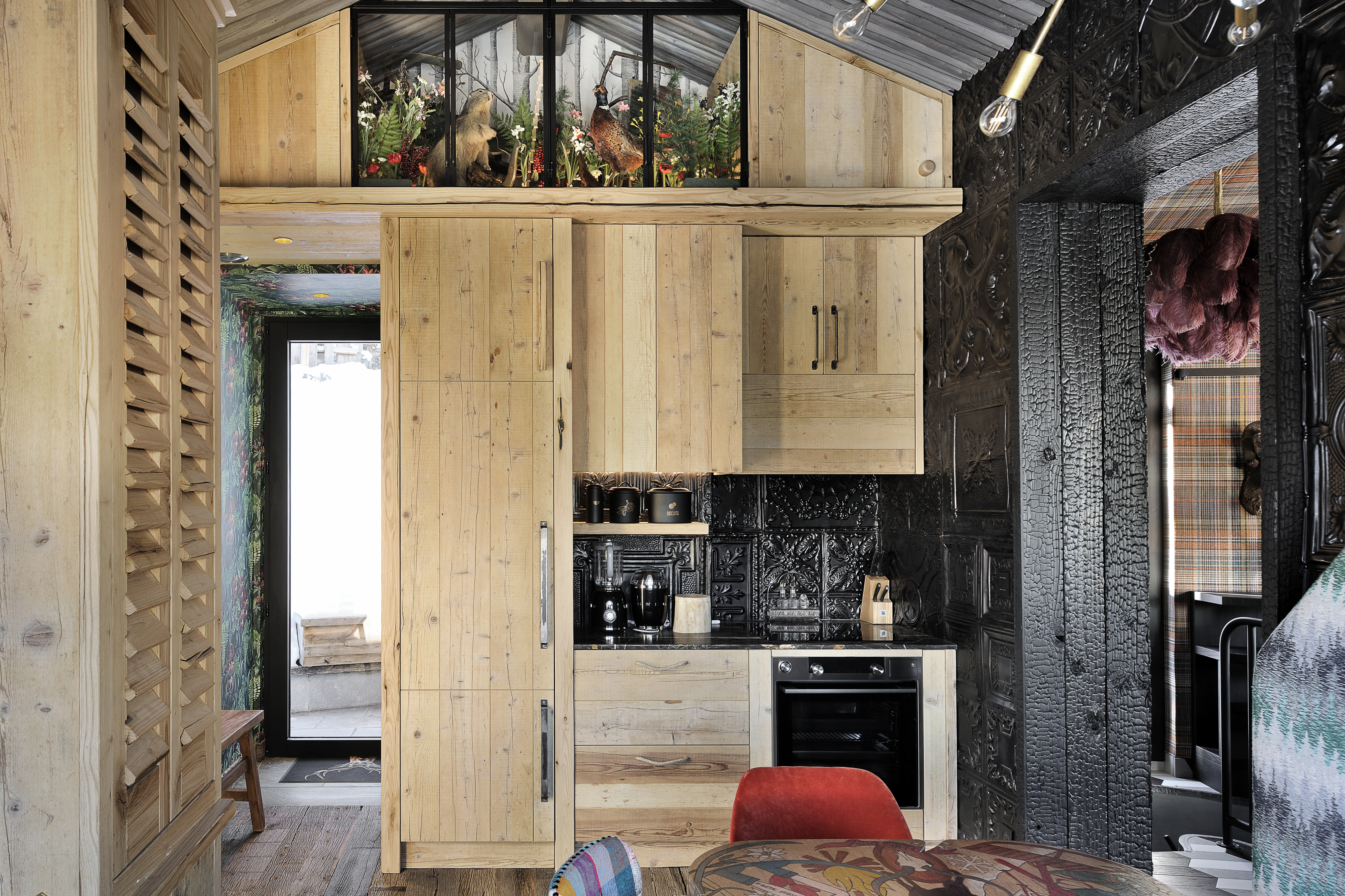 - Ambiance raffinée mêlant éléments rétro chic et bois naturel