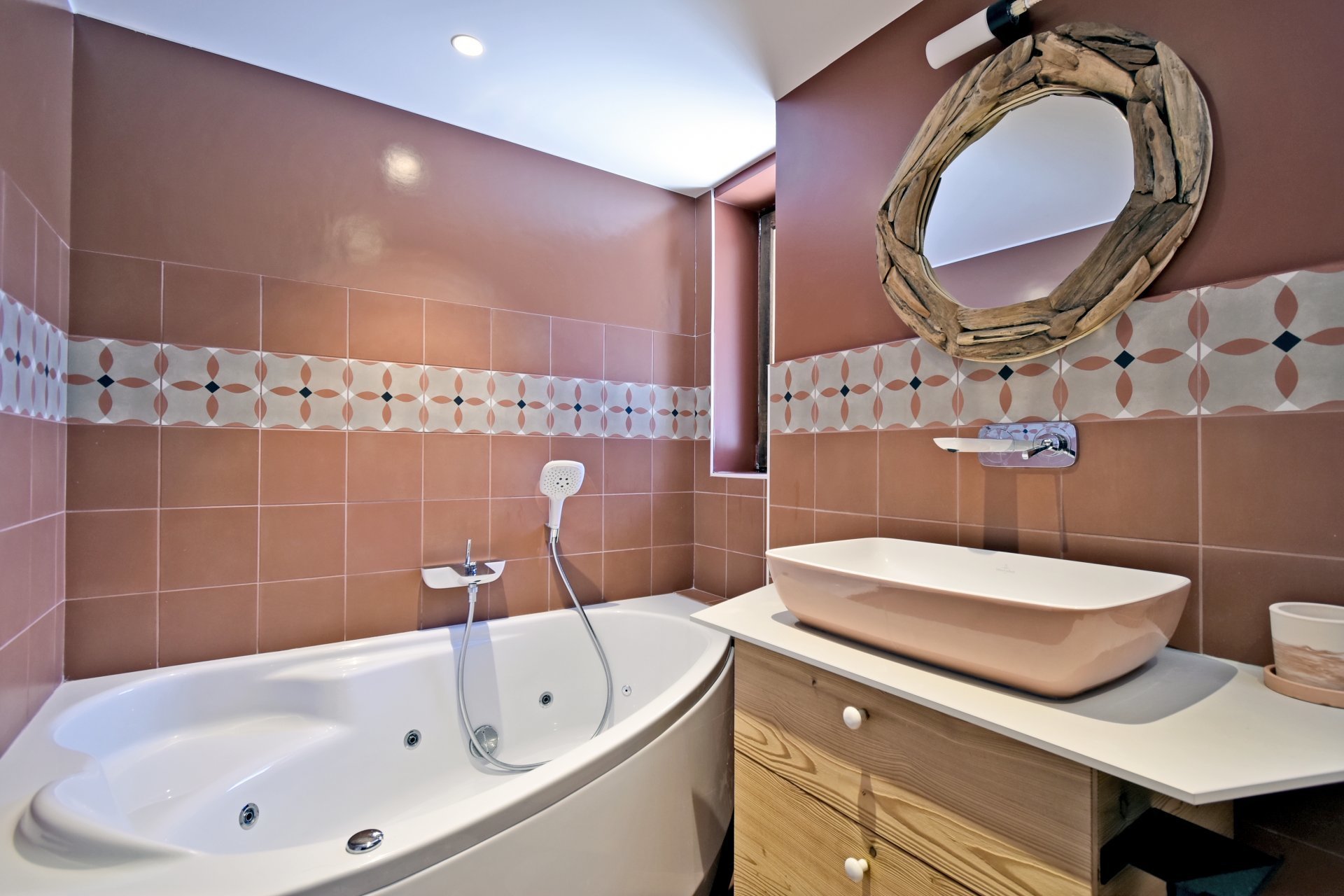 - Une chambre avec un lit double et une salle de bain