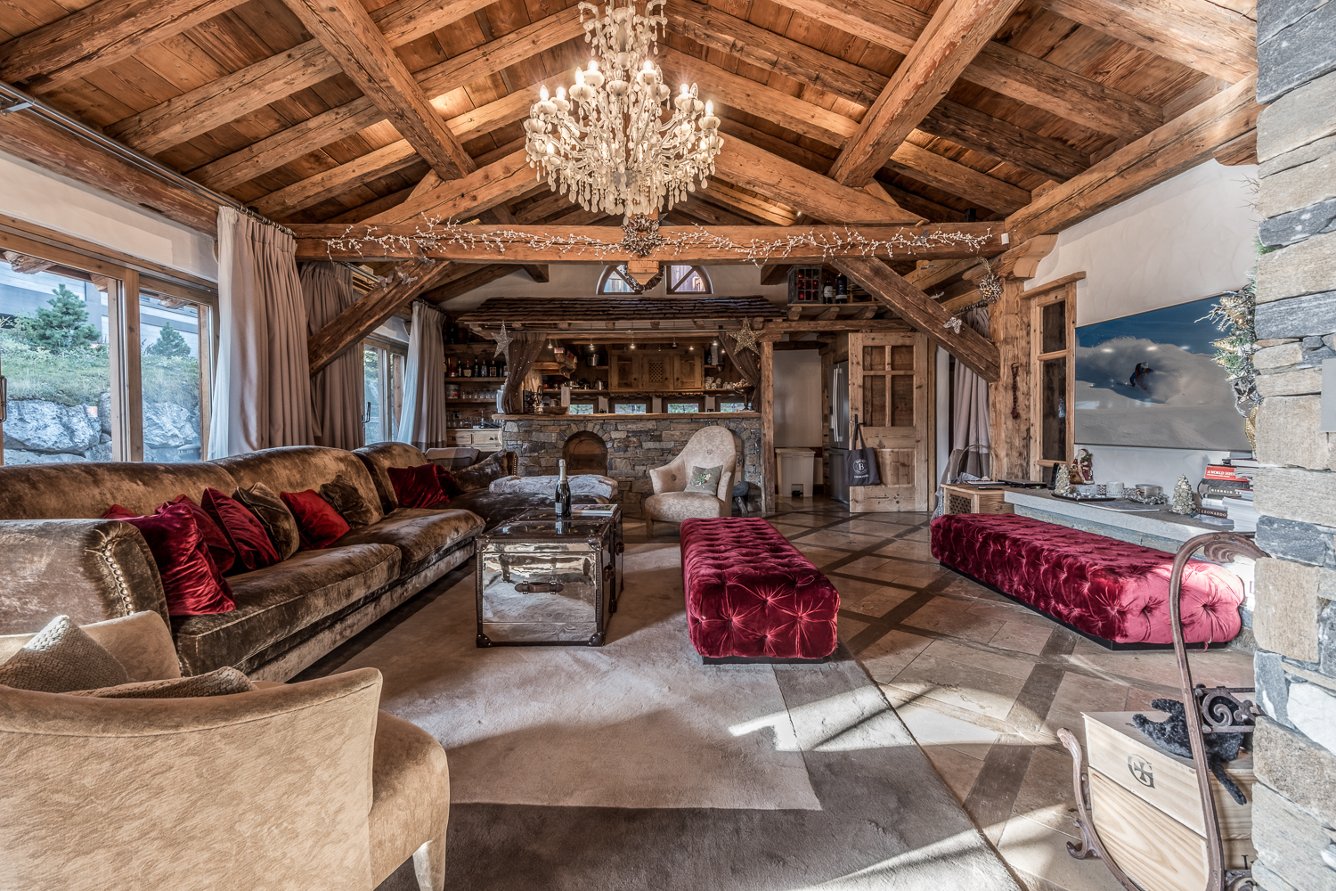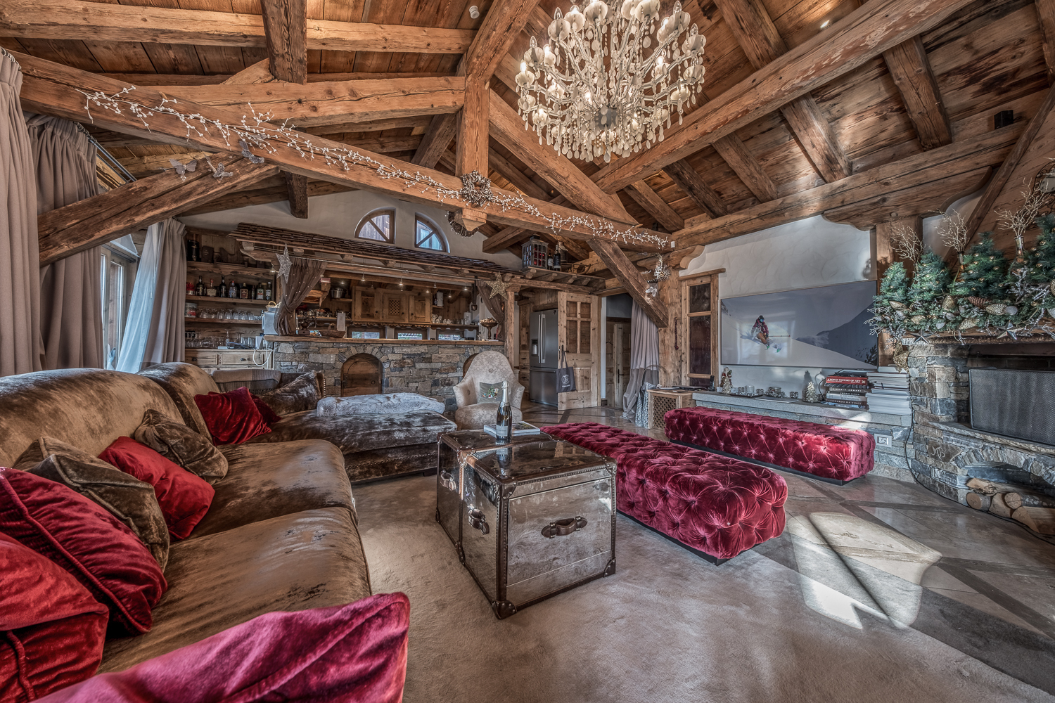 Située dans la très prestigieuse station de Courchevel 1850, au cœur du plus grand domaine skiable du monde, cette propriété haut de gamme offre un cadre unique pour un séjour d'exception. Nichée dans un domaine privé exclusif, ce chalet authentique allie charme alpin et prestations luxueuses, répondant à tous les critères d'une résidence d'exception. Avec des matériaux nobles et de qualité, de généreux volumes soulignés par une belle hauteur sous plafond, et des chambres toutes dotées de salles de bains attenantes, ce chalet conjugue à merveille raffinement et convivialité. Vous y trouverez également des espaces de loisirs soigneusement conçus pour agrémenter votre séjour.
