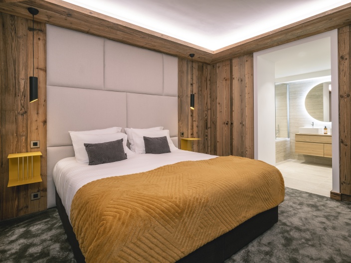 Le chalet est composé de 5 chambres doubles disposant chacune de leur salle de bain et toilette, ainsi que d’une chambre familiale pouvant accueillir jusqu'à 5 personnes. Venez découvrir son espace de vie spacieux et lumineux qui vous subjuguera avec ses 4m50 de hauteur sous plafond et sa cheminée en bois. Prolongez l'évasion avec son balcon panoramique plein sud donnant sur les montagnes.