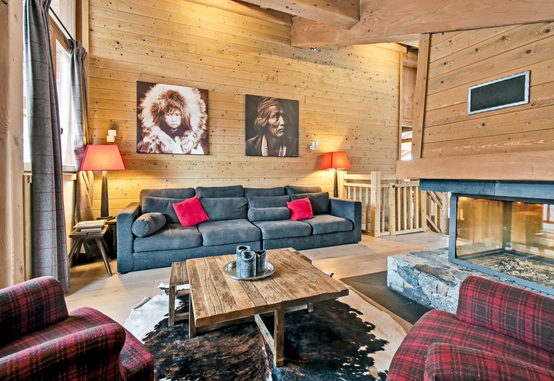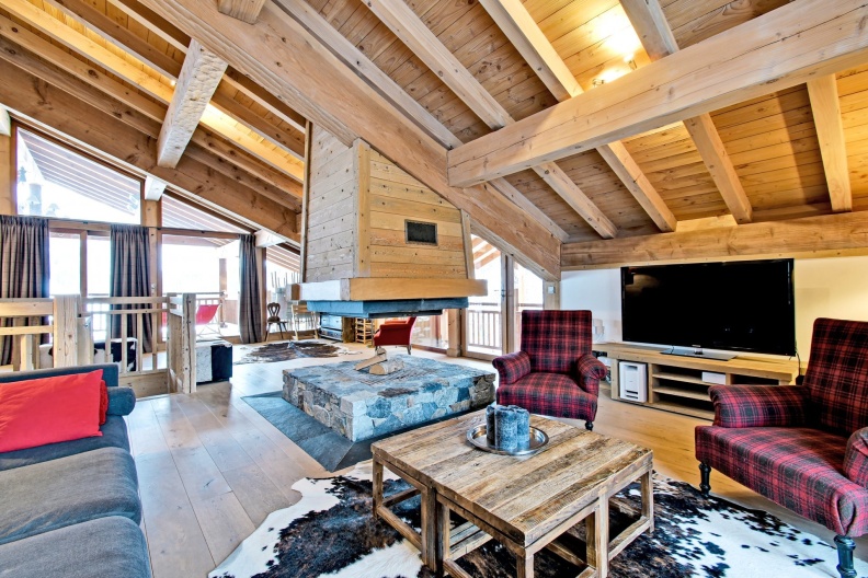 - Salon-lounge avec TV et cheminée centrale