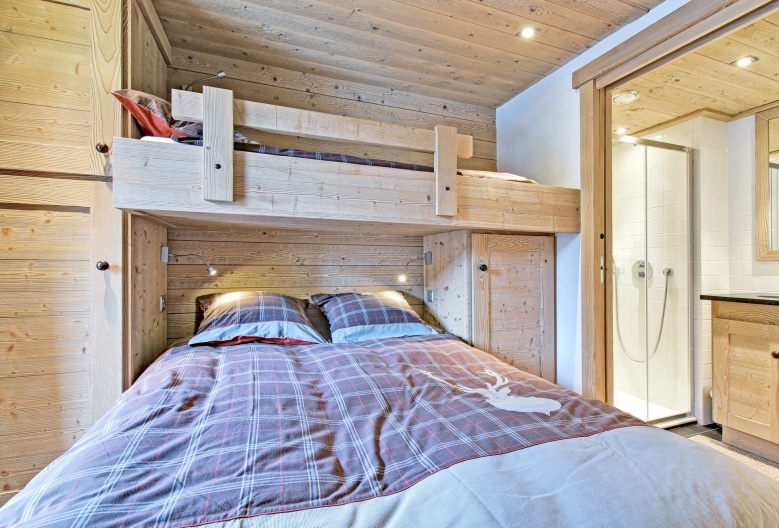 - Chambre 3 : lit double (140x200) et un lit simple en hauteur, salle de bain avec douche