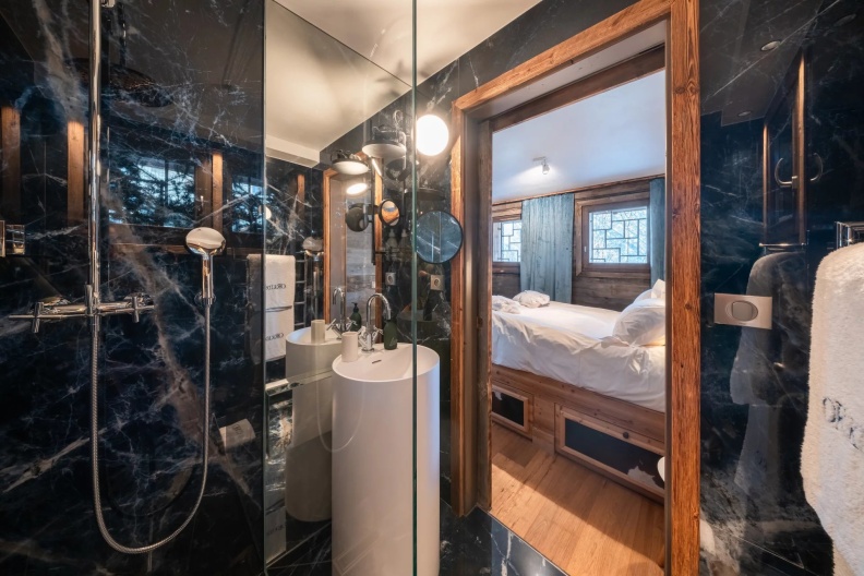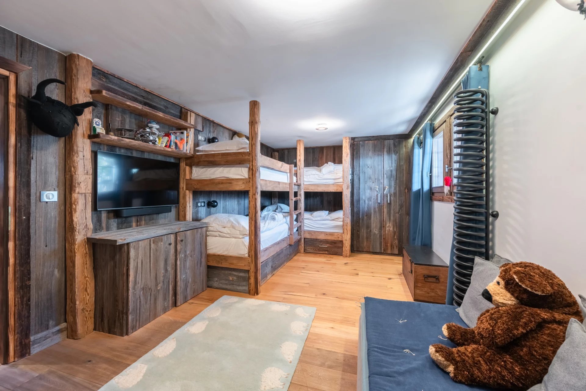- Grand dortoir avec 4 lits superposés, salle de bain, vasque, TV