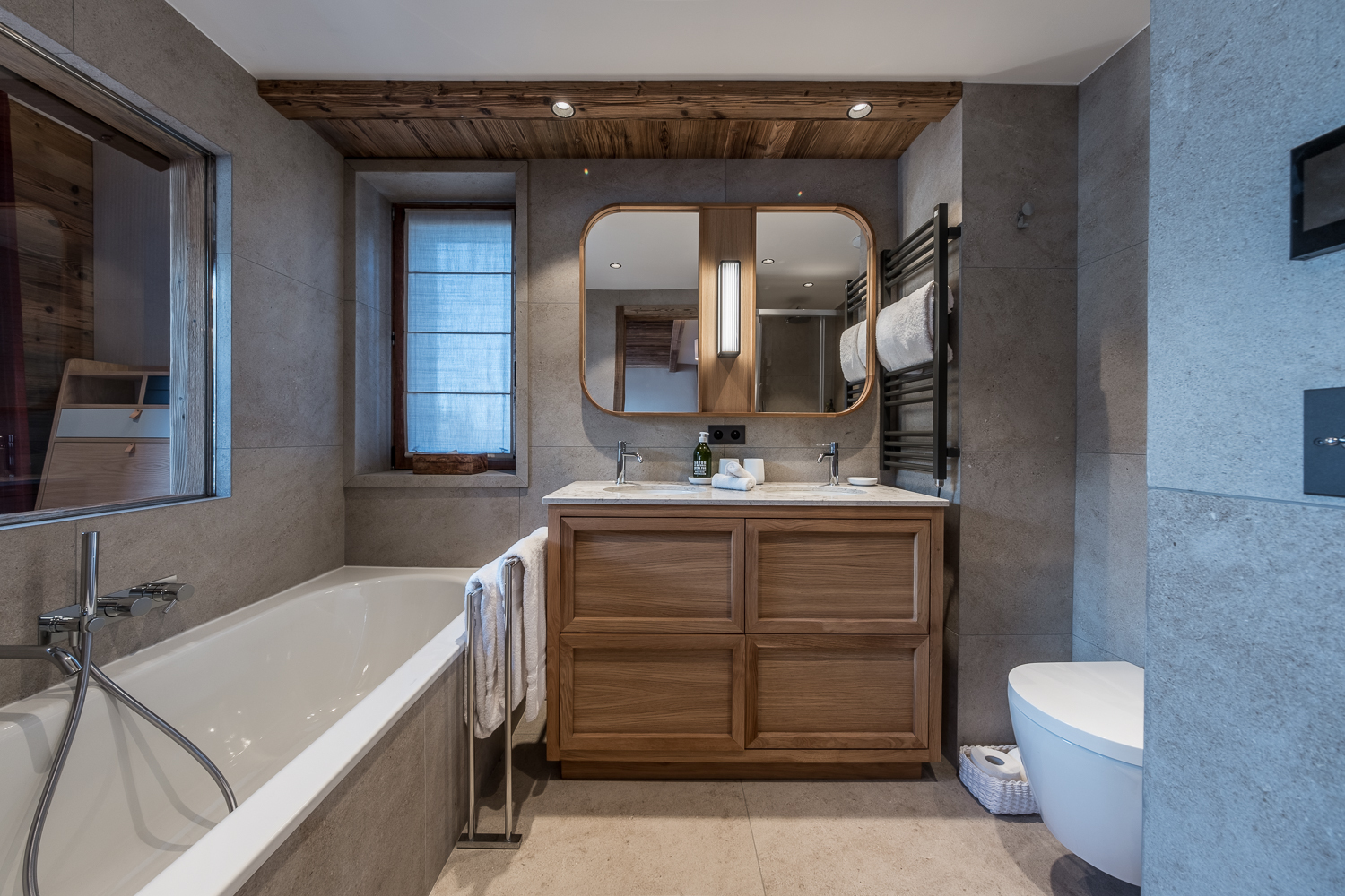 - Chambre 2 : lit double Queen size (160x200), salle de bain privative avec baignoire, 2 vasques et un WC - TV connectée